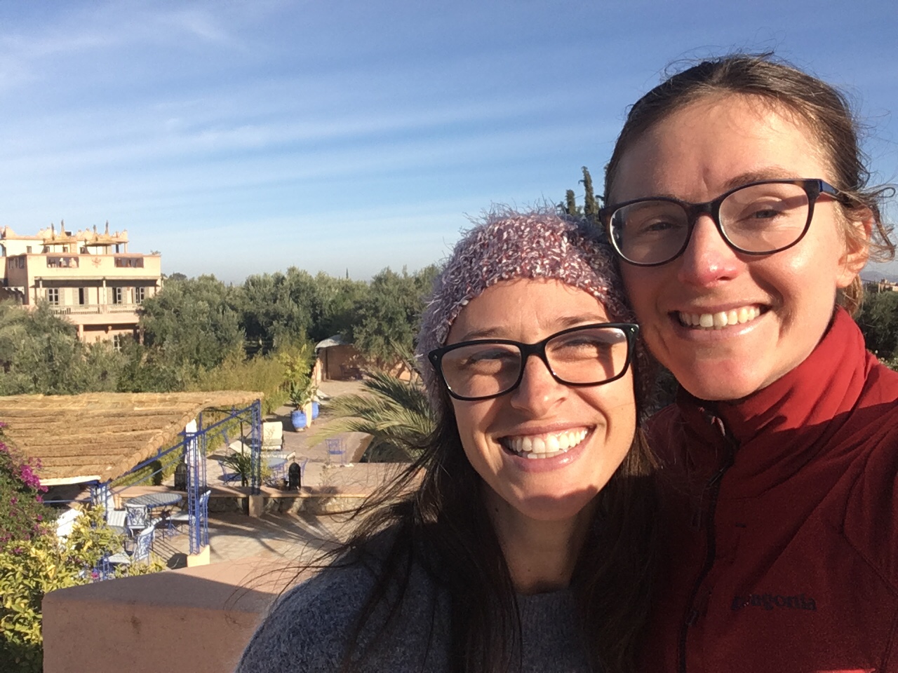 She picked me up from the airport and drove on pot-holed dirt roads to her palace, which is half an hour drive from the center of Marrakesh. Jackie rents a small mansion with three other English teachers, and we spent Christmas singing carols, watching movies by her fireplace, and doing yoga on her roof.