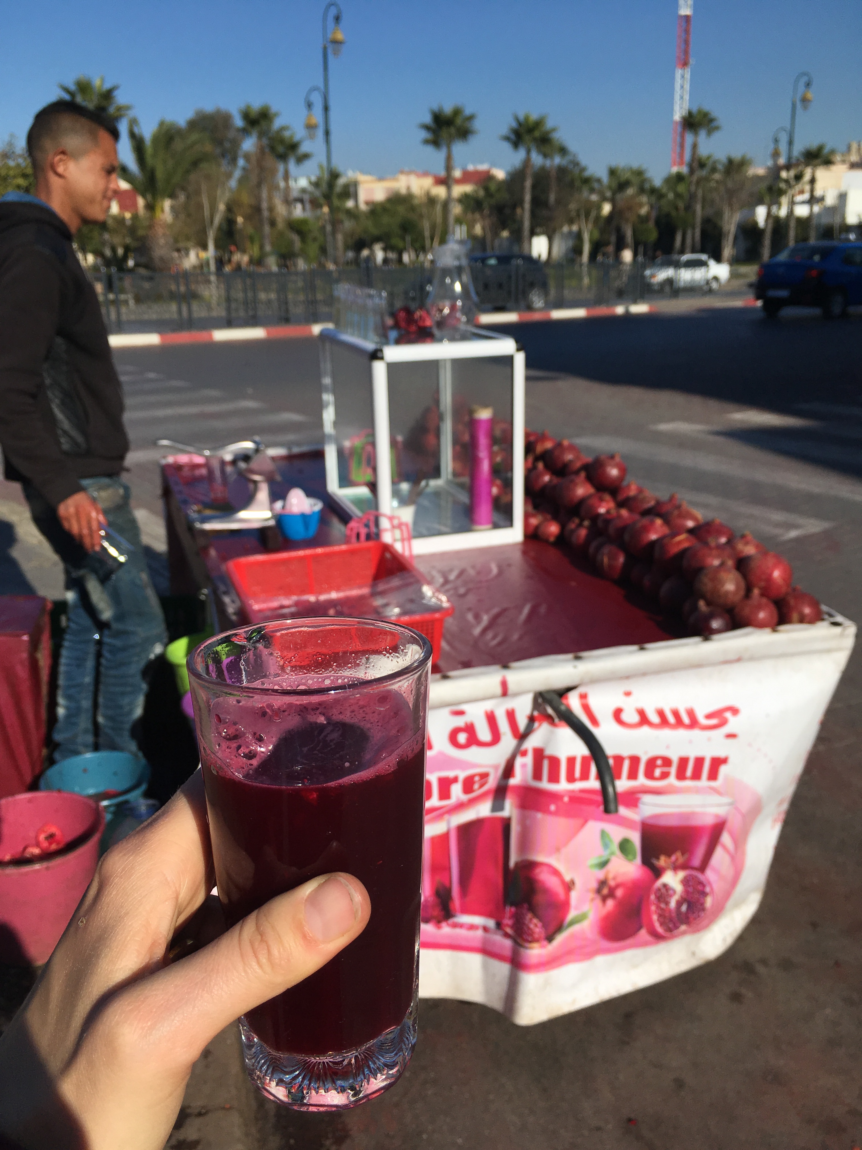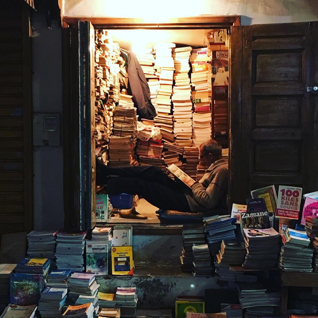 As the sun was descending in the pink and orange sky, I crossed a busy market, surrounded by thousands of people speaking mostly in Arabic and some in French. Practically every woman apart from myself was wearing a headscarf. I saw a decapitated camel head, spine dangling. People slurped up snails from roadside stands. Vendors sold everything from olives to underwear to cactus fruit to peanuts.